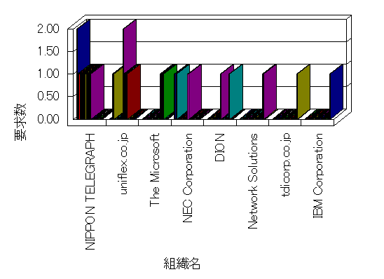 組織ユーザーにインターネット接続を提供する、商用または非営利団体、学術・行政機関などの、インターネット ドメイン で識別される団体や組織です。Microsoft Site Server Analysis は同じ組織に登録されたすべてのドメインを 1 つの組織としてグループ化します。ドメインがデータベースで使用できない場合は、1 つのインターネット ドメインが 1 つの組織を識別するのに使用されます。