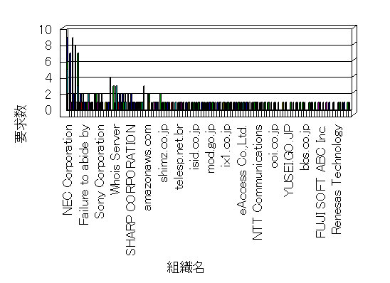参照組織のサイトには、このサイトにリンクするページがあります。グラフでは、このサイトへのアクセス数に基づいた、上位 10 組織を示します。