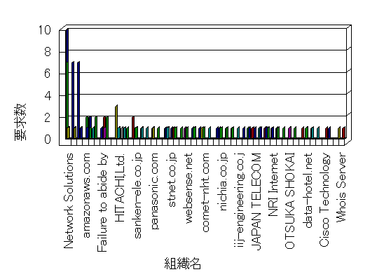 参照組織のサイトには、このサイトにリンクするページがあります。グラフでは、このサイトへのアクセス数に基づいた、上位 10 組織を示します。