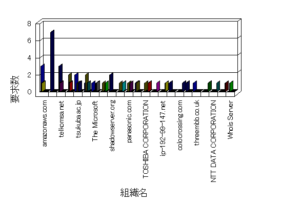 組織ユーザーにインターネット接続を提供する、商用または非営利団体、学術・行政機関などの、インターネット ドメイン で識別される団体や組織です。Microsoft Site Server Analysis は同じ組織に登録されたすべてのドメインを 1 つの組織としてグループ化します。ドメインがデータベースで使用できない場合は、1 つのインターネット ドメインが 1 つの組織を識別するのに使用されます。