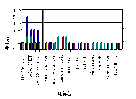 組織ユーザーにインターネット接続を提供する、商用または非営利団体、学術・行政機関などの、インターネット ドメイン で識別される団体や組織です。Microsoft Site Server Analysis は同じ組織に登録されたすべてのドメインを 1 つの組織としてグループ化します。ドメインがデータベースで使用できない場合は、1 つのインターネット ドメインが 1 つの組織を識別するのに使用されます。