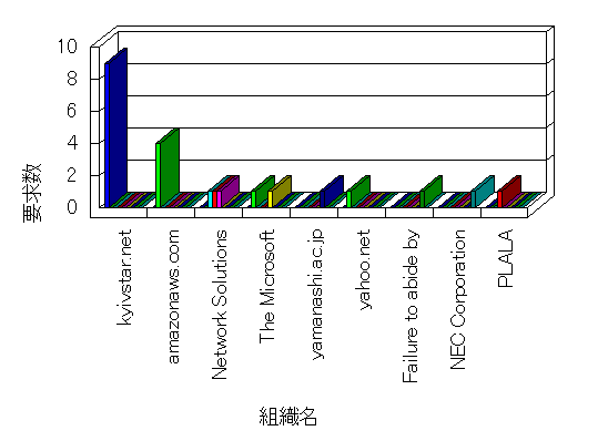 参照組織のサイトには、このサイトにリンクするページがあります。グラフでは、このサイトへのアクセス数に基づいた、上位 10 組織を示します。