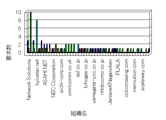 参照組織のサイトには、このサイトにリンクするページがあります。グラフでは、このサイトへのアクセス数に基づいた、上位 10 組織を示します。
